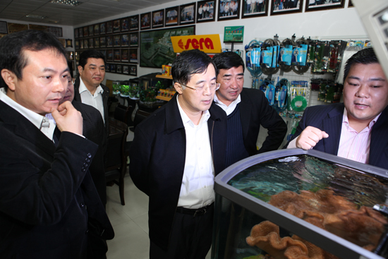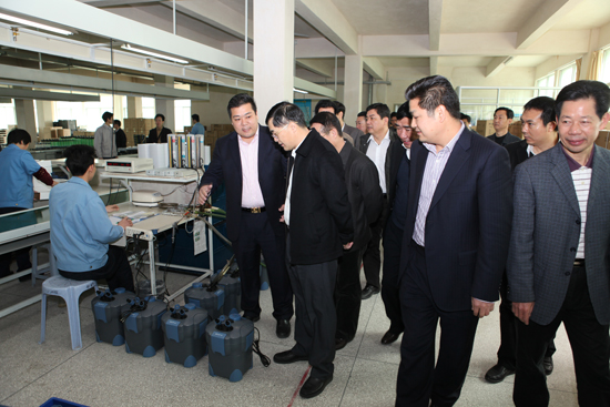 24日,潮州市委副書記、市長許光在市、縣有關部門領導的陪同下,到我司調研。公司余總經理向許光市長詳細介紹了產品的技術特色和銷售情況。當得知我司的水族產品大部分出口歐美市場時,許光市長勉勵我司在開拓國外市場的同時,積極利用“雙轉移”戰略,發展國內市場。